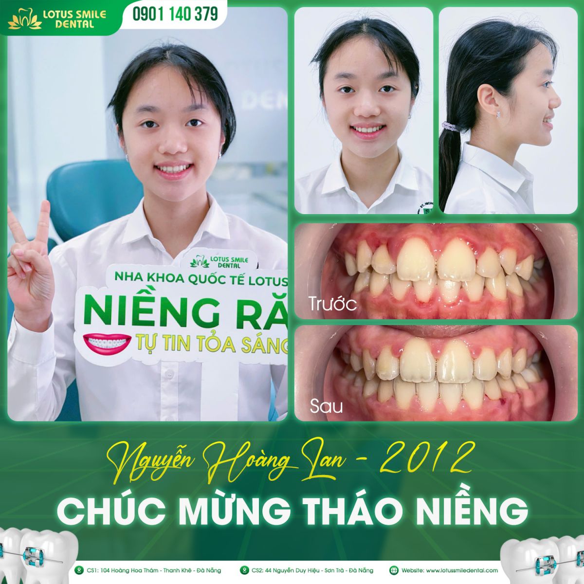 Niềng răng không chỉ là phương pháp làm đều răng mà còn là quá trình thay đổi toàn diện về thẩm mỹ khuôn mặt, chức năng ăn nhai và sự tự tin trong giao tiếp. Ngày càng nhiều khách hàng lựa chọn chỉnh nha để cải thiện nụ cười, và những phản hồi thực tế sau điều trị chính là minh chứng rõ ràng nhất cho hiệu quả của phương pháp này. Tại Nha khoa Lotus Smile, hàng trăm khách hàng đã trải qua hành trình niềng răng thành công với những thay đổi tích cực cả về ngoại hình lẫn chất lượng cuộc sống.